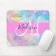 Girly Rainbow Holographic Iridescent Monogram Name Mouse Pad