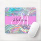 Girly Rainbow Holographic Iridescent Monogram Name Mouse Pad