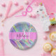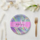 Girly Rainbow Holographic Iridescent Monogram Name Paper Plate