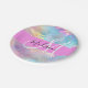 Girly Rainbow Holographic Iridescent Monogram Name Paper Plate