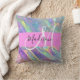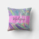 Girly rainbow holographic iridescent monogram name and initial throw pillow. Your custom name and monogram are written in an elegant hand lettered script with a pink background. A perfect birthday or Christmas gift!