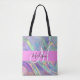 Girly Rainbow Holographic Iridescent Monogram Name Tote Bag