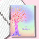 This pretty notebook is decorated with a tree and background in rainbow colors with faux sparkling stars.