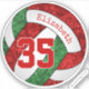This custom volleyball sticker features the stylized image of a red, green and white volleyball that has a floral kaleidoscopic pattern blended with its red and green panels - her name jersey number are customizable - by katz_d_zynes