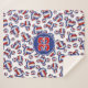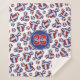 This sporty volleyball sherpa fleece blanket features a randomly arranged pattern of red, white and blue volleyballs in varying sizes turned every which way on a white background - the red and blue volleyball panels are blended with an artsy, girly floral pattern - player name and jersey number are customizable - by katz_d_zynes