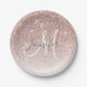 Girly Rose Gold Glitter Blush Monogram Name Paper Plate