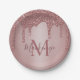 Girly Rose Gold Glitter Drips Monogram Birthday Paper Plate