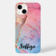 Girly Rose Gold Pink Agate Quartz Sparkle Monogram Case-Mate iPhone Case