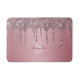 Girly Rose Gold Pink Glitter Drip Sparkle Monogram Bath Mat