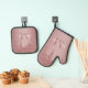 Girly Rose Gold Sparkle Glitter Drips Monogram Oven Mitt & Pot Holder Set