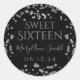 Girly Silver Foil Confetti Sweet Sixteen Black Classic Round Sticker