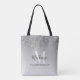 Girly Silver Grey Glitter Monogram Name Tote Bag