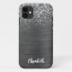 Girly grey brushed metal with silver glitter decorates this iphone case. Designed for you by Blackberry Boulevard.