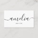 Girly modern script calligraphy. On the back there’s social media icon (facebook, instagram and tik tok) and add your QR Code.