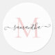 Girly Soft Pink and White Polka Dot Monogram Classic Round Sticker