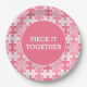 Piece It Together Puzzle Paper Plates. Birthday party plate with a shade of pink puzzle pieces.