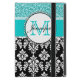 Girly, Teal, Glitter Black Damask Personalized Case For iPad Mini