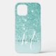 Girly Teal Glitter Monogram Name Case-Mate iPhone Case