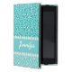 Girly, teal glitter image printed on the background, with a teal and turquoise zebra stripes pattern, and a teal solid line with two lines of faux printed white diamonds which you can personalize with your name in a fun bold script font. A cute, cool, fun design for her.