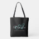 Girly Teal Green Chic Black Script Name Monogram Tote Bag