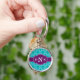 Girly Teal Quatrefoil Pattern Purple Monogram Keychain
