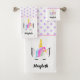 Girly trendy Cute Magical Unicorn with name Bath Towel Set