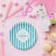Girly Turquoise Painted Stripes Monogram and Name Paper Plate