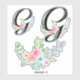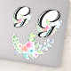 Girly pink, blush and blue watercolor floral spray with black script font monogram/initial. Letter G.