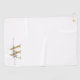 Modern Girly Elegant White and Gold Monogram Initial Name Signature Script Custom Personalized Golf Towel. This design featuring your first name in a pretty hand lettered style swash tail font typography (or calligraphy) with monogram initial in gold and black on white colour background. These are easy to customize it. Great stylish feminine birthday gift, also for mother’s day, wedding, anniversary, bachelorette party, bridal shower and It’s for the girl who loves unique clean minimalist things.