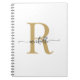 Modern, Simple, Elegant White and Gold Monogram Initial Name Feminine Signature Script Spiral Notebook. This minimalist plain colour design featuring your first name in a pretty hand lettered style black swash tail font typography with gold monogram initial on white colour background. Easy to personalize them. Great custom personalized girly gift for Birthday Party, Housewarming, Wedding, SWEET 16 Birthday party, Bridal shower, BABY shower and for anyone who loves pretty minimalist style.