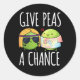 Give Peas A Chance Funny Hippie Peas Pun Dark BG Classic Round Sticker