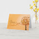 Tree with red, orange, and brown autumn leaves falling off of it on a pumpkin orange muted background. Text on the front of the card reads, "Give Thanks". Personalize the Thanksgiving seasonal message inside the card with your own text.