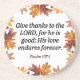 Embrace the spirit of gratitude with our Give Thanks Collection, inspired by the timeless Bible verse, “Give thanks to the Lord, for He is good; His love endures forever” (Psalm 107:1). This collection is a heartfelt reminder of God's unwavering goodness and love. Each piece is thoughtfully crafted to help you express your thankfulness and share this powerful message with others. Whether you’re decorating your home, gifting a loved one, or simply seeking daily inspiration, the Give Thanks Collection is designed to uplift your spirit and keep the focus on God’s enduring goodness.