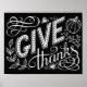 Give thanks hand lettering quote in chalk board style on black background. Thanksgiving holiday poster design