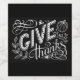 Give thanks hand lettering quote in chalk board style on black background. Thanksgiving holiday card design