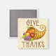 This magnet features a cornucopia filled with fruits that reads GIVE THANKS