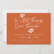 Celebrate Thanksgiving with your loved ones with this modern and elegant invitation. The invitation features the word "in all things give thanks" set on an autumn burnt orange background. The perfect way to invite your guests to a memorable evening of food, fun, and fellowship.