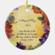 Thanksgiving personalized ceramic ornament depicts beautiful rustic autumn watercolor floral purple, burnt orange, blue and yellow flowers and greenery. If features Bible Verse Psalm 136:1, "Give thanks to the LORD, for he is good. His love endures forever." The back name, date and Bible Verse can be customized to your choice.