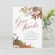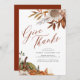 Modern trendy dark brown, neutral beiges and rusty burnt orange terracotta autumn fall floral botanical leaves and pumpkins rustic elegant calligraphy script Thanksgiving Dinner invitation.