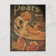 Little boy in bathtub reaches out for a puppy being held by a little girl. Vintage advertisement 19th century.