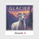 Discover the beauty of Glacier National Park with this stunning poster. Featuring a majestic white mountain goat in the foreground, towering purple mountains, and vibrant spring flowers, this flat illustration style poster is perfect for any nature lover.
