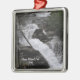 A stream of icy cold water tumbles down a rocky mountainside in Glacier National Park in a rushing waterfall. This photo ornament has the words "Glacier National Park" in casual typography. Below these words is the template"20XX" to customize with the current year.