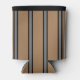 Cette glacière présente un fond beige avec des rayures grises et noires.