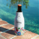 Un arrière - plan blanc aux motifs colorés de fleurs inspirés de la broderie d'artisans mexicains natifs fait de ce glacière de bouteille une touche de finition joyeuse à tout événement de mariage ou de fête de destination. Personnalisez avec un monogramme, une date et un emplacement plus ajoutez chaque membre du nom et du rôle de tuile de la fête nuptiale pour un cadeau d'une nature qu'ils utiliseront encore et encore.