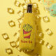 Illustration de dessin d'un petit paquet de frites sur arrière - plan de motif de malbouffe jaune sans soudure. Texte personnalisé.