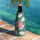 Ce glacière de bouteille (ou de changement d'options pour une boîte) a un joli motif feuillu et un cadre de quatrefoil rose pour une initiale monogramme personnalisée.