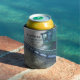 L'agriculture, le travail le plus dur que vous aimerez la bière coozie. Cette conception comprend une grande moissonneuse verte battante un champ de blé.