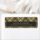 This elegant return address label is part of a sophisticated art deco wedding suite, featuring luxurious frames and intricate, shimmering gold details. The classic designs exude a glamourous vintage charm, with a colour palette of black, glowing gold, and warm grey tones. The ornate details add a touch of sophistication to this timeless design. Add your names and return address using the provided template. Search ID1033 to see other wedding products in the design set.
