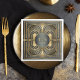 This elegant paper napkin is part of a sophisticated art deco wedding suite, featuring luxurious frames and intricate, shimmering gold details. The classic designs exude a glamourous vintage charm, with a colour palette of black, glowing gold, and warm grey tones. The ornate details add a touch of sophistication to this timeless design. Add your initials and wedding date easily using the provided template. Search ID1033 to see other wedding products in the design set.