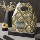 This elegant favour box is part of a sophisticated art deco wedding suite, featuring luxurious frames and intricate, shimmering gold details. The classic designs exude a glamourous vintage charm, with a colour palette of black, glowing gold, and warm grey tones. The ornate details add a touch of sophistication to this timeless design. Add your initials, wedding date and thank you message using the provided template. Search ID1033 to see other wedding products in the design set.